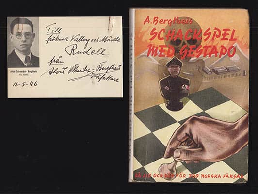 Denna berättelse om andra världskriget, Schackspel med Gestapo. På liv och död för 700 norska fångar, är skriven av A. Bergtheis, en pseudonym för Alvis Schneider. Boken, som publicerades av Almströms Förlag 1946, ger en unik inblick i den tyska antinazistens liv och gärningar i Norge. Med en bakgrund som aktiv i motståndsrörelsen, beskriver författaren sin kamp mot nazismen och de faror han ställdes inför.