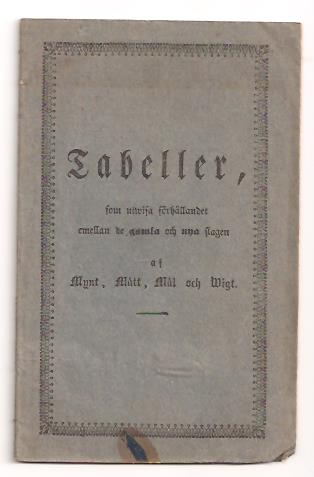 Information om Tabeller som utwisa förhållandet emellan de gamla och nya slagen ag mynt, mått, mål och wigt av A. G. G Salenius