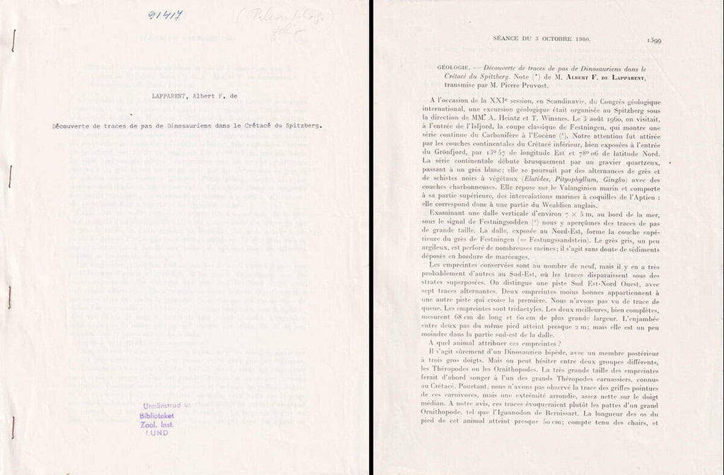 Ytterligare information om Découverte de traces de pas de Dinosauriens dans le Crétacé du Spitzberg. Note av Albert F. de Lapparent