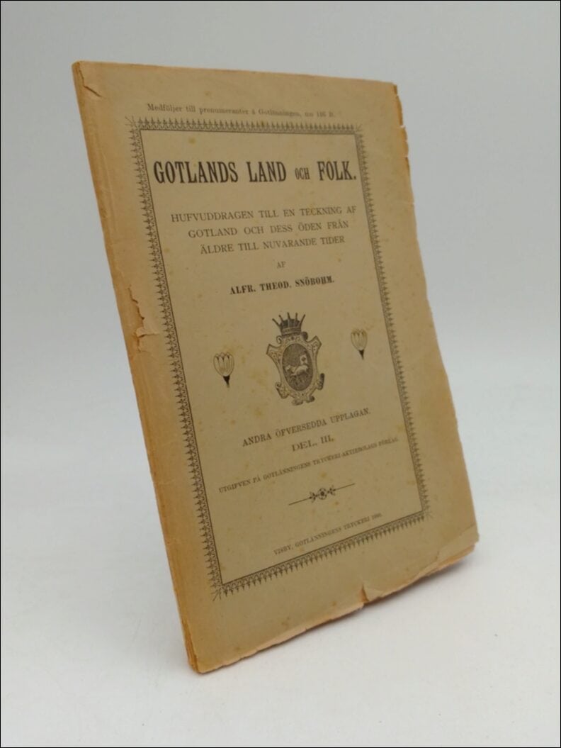 Gotlands land och folk: Hufvuddragen till en teckning af Gotland och dess öden från äldre till nuvarande tider av Alfred Theodor Snöbohm erbjuder en grundlig insyn i Gotlands historia och geografi. Utgiven 1871, är denna bok resultatet av en pristävlan utlyst av Gotlands landsting för att skapa en lärobok om ön. Snöbohm, som var verksam som lärare under större delen av sitt liv, har med stor noggrannhet sammanställt information om Gotland som en svensk provins.