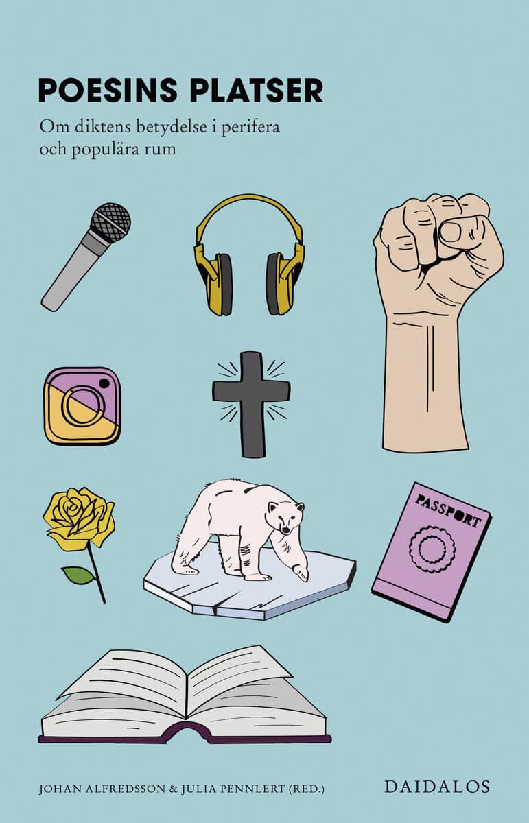 Boken Poesins platser : om diktens betydelse i perifera och populära rum utforskar poesins närvaro i olika miljöer och dess funktion i samhället. Genom en antologi av flera författare belyses hur poesin inte bara existerar i traditionella format som diktsamlingar, utan även i låttexter, på sociala medier och i reklamslogans. Boken ger en mångfacetterad bild av poesins roll, både som ett allvarligt uttryck och som en lekfull form av kommunikation som binder människor samman.