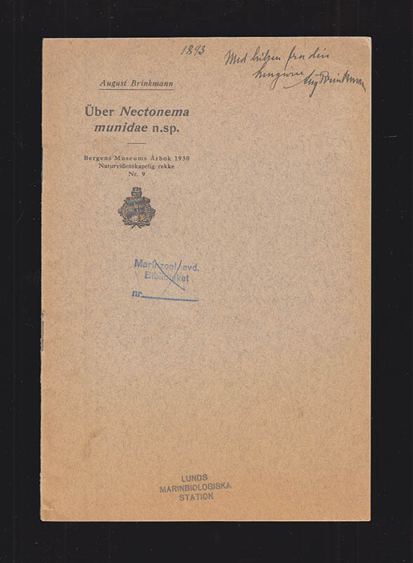 Boken Über Nectonema munidae n.sp. Mit 2 Tafeln av August Brinkmann handlar om den zoologiska arten Nectonema munidae, som är av intresse inom studier av polarområdena. Brinkmann, en dansk-norsk zoolog, bidrog betydligt till utvecklingen av Bergens museum och publicerade flera verk om både ryggrads- och ryggradslösa djur.