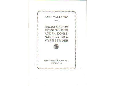 Axel Tallbergs verk Några ord om etsning och andra konstnärliga gravyrmetoder erbjuder en intressant inblick i värld av grafisk konst. Denna faksimil av 1912 års utgåva är ett viktigt dokument för den som vill förstå de tekniker och metoder som används inom grafisk konst.