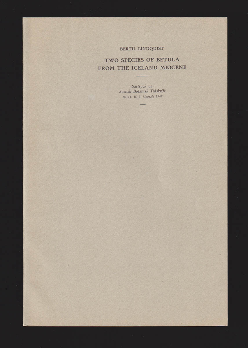 Denna klammerhäftade publikation, med tryckta originalomslag, är i fint antikvariskt skick och mäter 23,5 x 15,5 cm. Two species of Betula from the Iceland miocen är ett särtryck ur Svensk Botanisk Tidskrift 1947, Band 41, Häfte 3, sidorna 339-353. Lindquists arbete är inte bara en akademisk studie, utan också en hyllning till den svenska naturens komplexitet och skönhet.