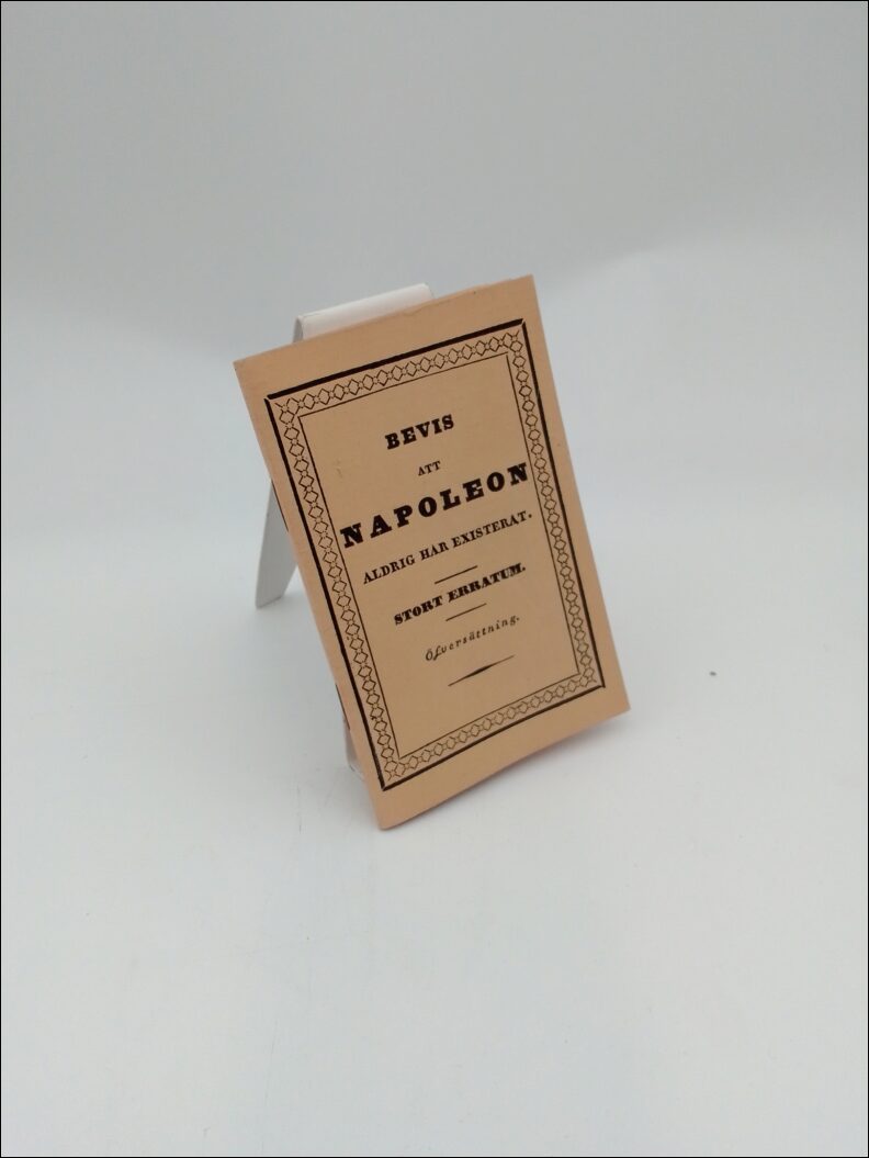 I Bevis att Napoleon aldrig har existerat: Stort erratum utforskas en kontroversiell teori som utmanar traditionella uppfattningar om en av historiens mest kända ledare. Boken, som har ett omfång av 32 sidor, presenterar argument och bevis för att ifrågasätta Napoleons existens. Den är klammerhäftad och i fint antikvariskt skick, vilket gör den till ett intressant tillskott för samlare och historieentusiaster.