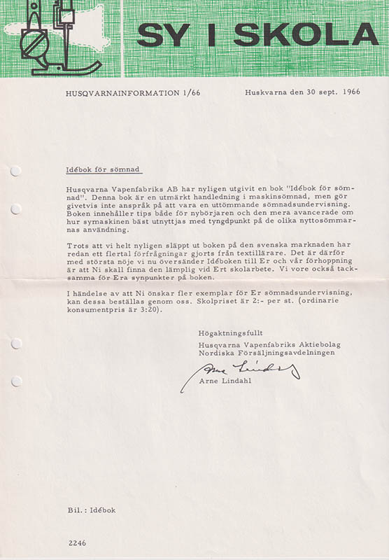 Detta exemplar är ett klammerhäftat band med utvikbara omslag, och det är i mycket fint antikvariskt skick. Boken mäter 21x21 cm och medföljer ett ettbladstryck med Husqvarnainformation från 1966.