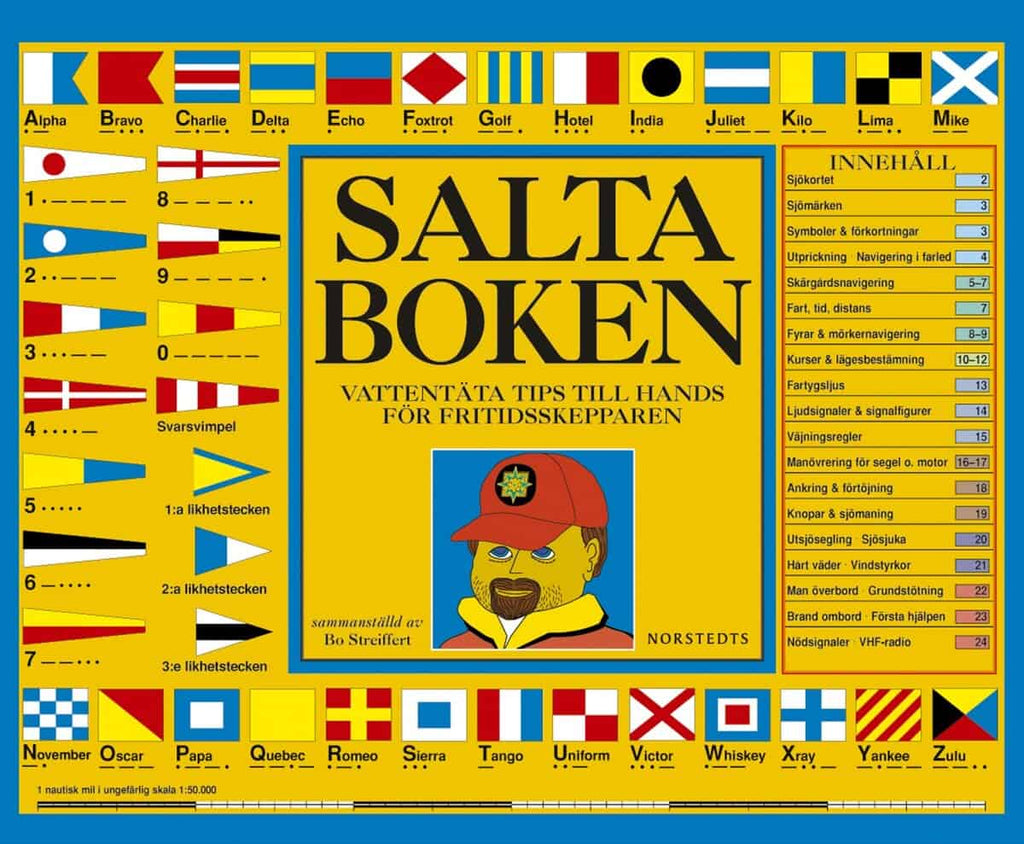 Denna bok innehåller snabbfakta om navigering, sjömärken, fartygsljus och signaler, samt viktiga aspekter av sjösjuka och första hjälpen. Salta boken har varit en klassiker inom båtlivet sedan den första upplagan publicerades 1968, och har sedan dess uppdaterats elva gånger för att anpassa sig till förändringar i sjökortsutformning och navigationsmetoder. Boken tar hänsyn till den snabba utvecklingen av både båtmaterial och elektroniska navigationshjälpmedel.