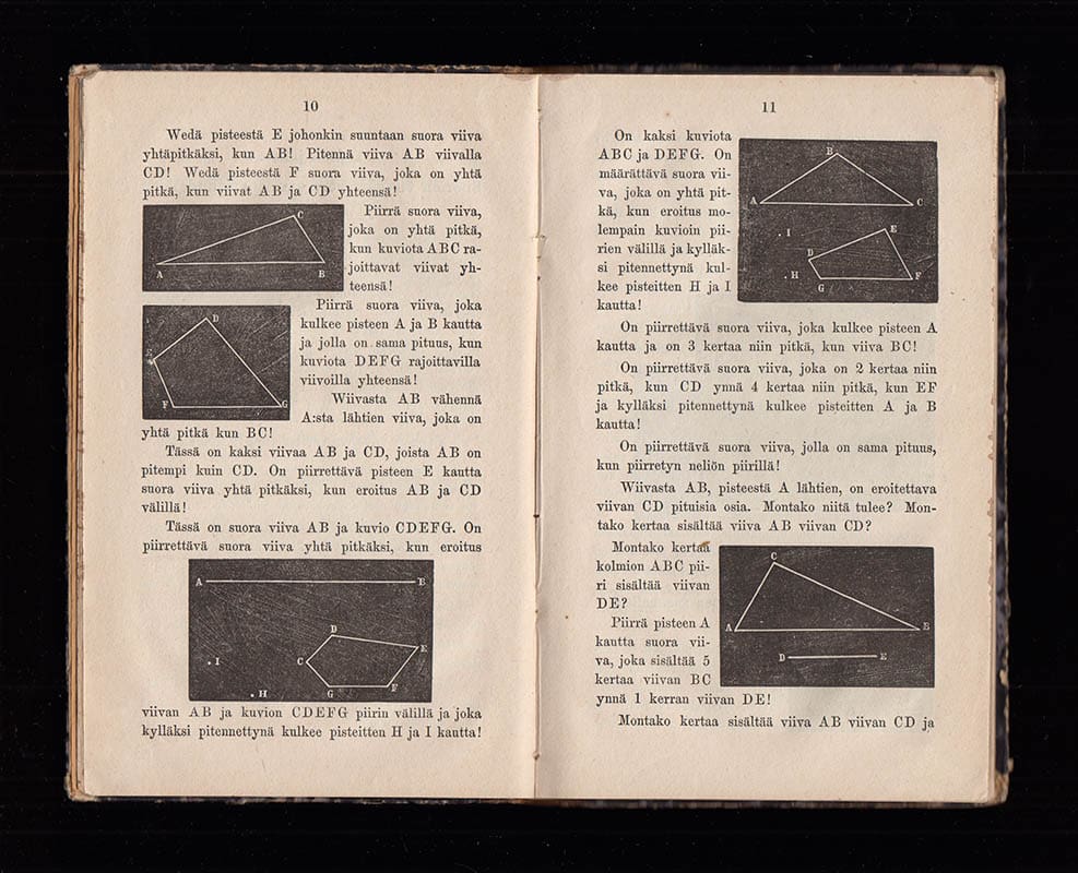 E. Bonsdorff, som bidrog till utbildningen inom lantmäteri, presenterar i denna bok en kort introduktion till ämnet. Boken är bunden i ett samtida skinnryggband med marmorerat pärmpapper och innehåller en monterad pärmetikett med namnteckningen av W. Snell, en svensk lärare och författare verksam under 1900-talet. Snell föddes 1896 och hade en betydande karriär som skolinspektör.