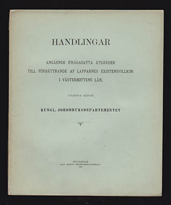 Handlingar angående ifrågasatta åtgärder: till förbättrande af lapparnes existensvillkor i Västerbottens län är en betydelsefull publikation från 1905 som belyser frågor kring rättigheter och lagstiftning för samerna i Sápmi, särskilt i Södra Lappland. Författad av M. Borgström med flera, ger denna bok en inblick i de juridiska aspekterna av samernas existensvillkor under en tid av förändring.
