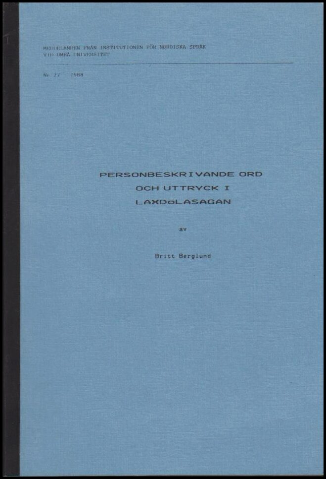 Information om Personbeskrivande ord och uttryck i Laxdölasagan av Britt Berglund