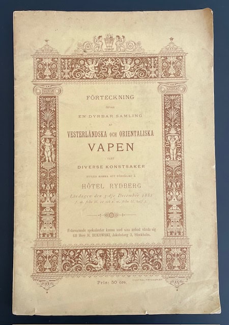 Information om Förteckning öfver en dyrbar samling vesterländska och orientaliska vapen samt diverse konstsaker av Bukowski katalog 3:e december 1881