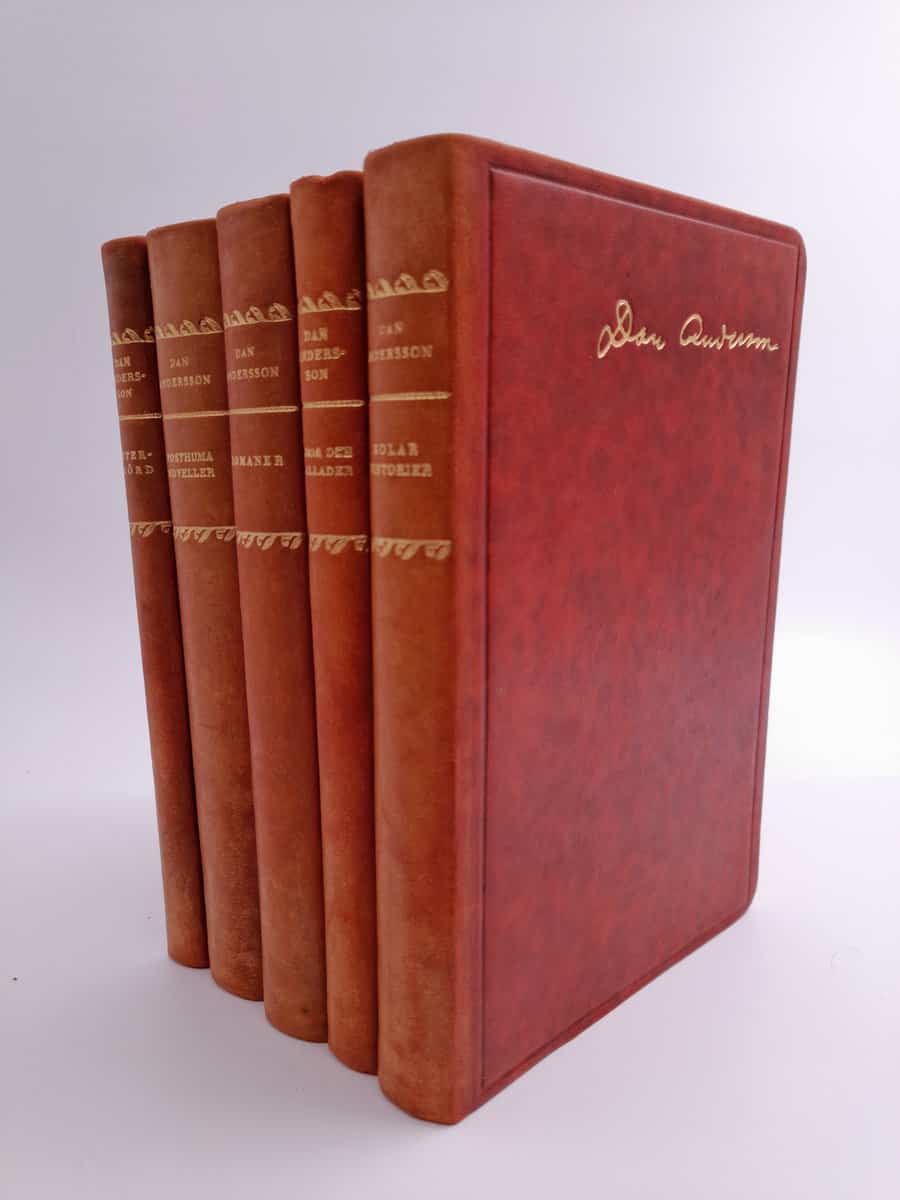 Med Kolarhistorier; Visor och ballader; Romaner; Posthuma noveller; Efterskörd: Samlade skrifter får läsaren en unik möjlighet att dyka ner i Dan Anderssons litterära universum. Andersson, en av Sveriges mest älskade författare, bjuder på texter som berör teman som kärlek, död och existentiella frågor. Hans förmåga att fånga livets komplexitet gör att hans verk fortfarande är aktuella och tidlösa.