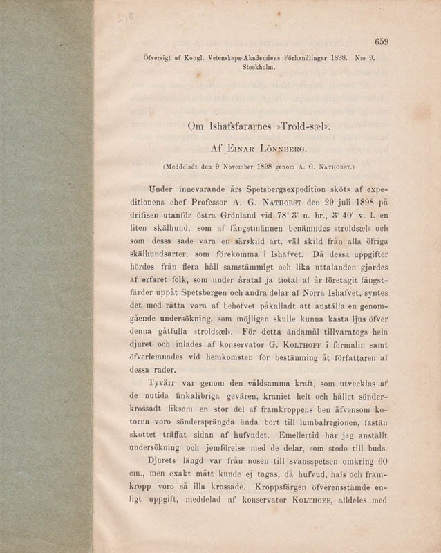 Information om Om Ishafsfaranes 'Trold- sæl'. (Meddeladt den 9 November genom A. G. Nathorst) av Einar Lönnberg