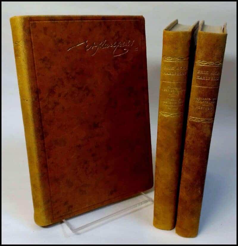 Denna samling, Minnesupplaga: Vildmarks- och kärleksvisor / Hösthorn / Fridolins visor / Fridolins Lustgård / Flora och Pomona / Flora och Belona, erbjuder en djupgående insikt i Karlfeldts författarskap. Med tre gulddekorerade skinnband och noggrant utvalda texter, speglar verket hans starka koppling till naturen och kärleken. Karlfeldts poetiska språk och naturskildringar bjuder på en rik läsupplevelse.