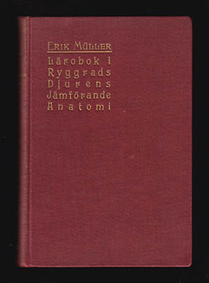 Lärobok i ryggradsdjurens jämförande anatomi av Erik Müller är en grundläggande text som publicerades av Albert Bonniers Förlag 1922. Boken omfattar 542 sidor och innehåller 324 textfigurer, vilket gör den till en omfattande resurs för studenter inom medicin och biologi. Med sin vinröda klotband och präglade, förgyllda titlar utgör den inte bara en informativ källa utan också ett vackert tillskott till bokhyllan.