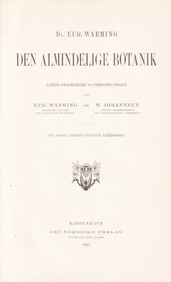 Eug. Warming, född den 3 november 1841, var en dansk botaniker som spelade en central roll i utvecklingen av ekologin som ett eget ämnesområde. Hans arbete har haft stor betydelse för förståelsen av växtlivets komplexitet och interaktioner i naturen. Den almindelige botanik är inte bara en lärobok, utan också en reflektion av den tidens vetenskapliga framsteg inom botanik.
