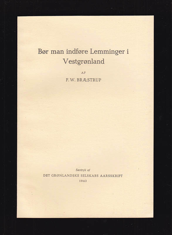 Är det möjligt att införa lämlar i Västgrönland? I Bør man indføre Lemminger i Vestgrønland utforskar Frits Wimpffen Braestrup denna fråga med fokus på de ekologiska och zoologiska aspekterna av en sådan åtgärd. Boken, publicerad av Det Grønlandske selskab 1943, är en del av deras årsskrift och erbjuder en grundlig analys av lämlars potentiella påverkan på den lokala faunan.