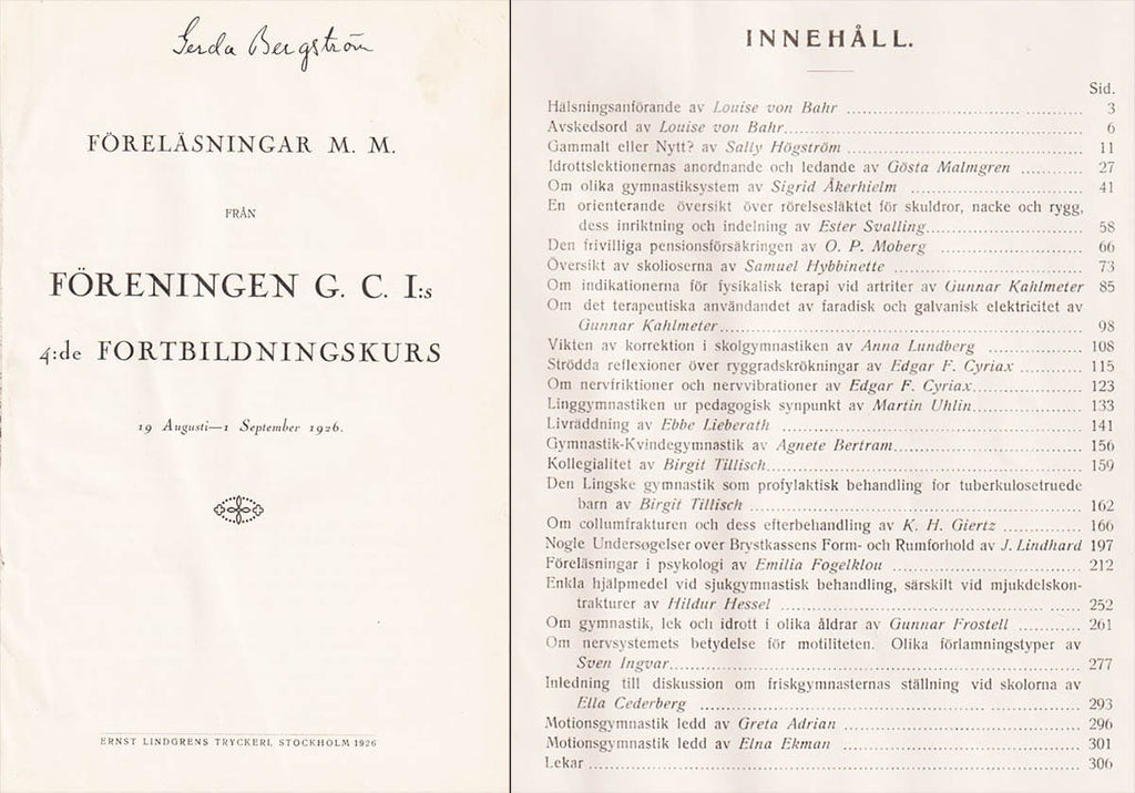 Föreläsningar m. m. från föreningen G. C. I:s 4:de fortbildningskurs 19 Augusti-1 September 1926 är en intressant dokumentation av gymnastikens utveckling och kvinnors roll inom idrott och hälsa under tidigt 1900-tal. Boken, utgiven av Gymnastiska Centralinstitutet (GCI) i Stockholm, innehåller 313 sidor med både svartvita fotografier och teckningar som ger en visuell inblick i gymnastikens praktik och teori.
