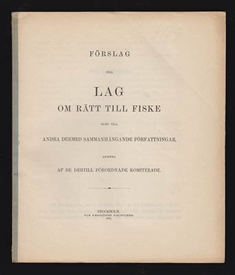 Boken Förslag till lag om rätt till fiske : ─ samt till andra dermed sammanhängande författningar. Afgifna af de dertill förordnade komiterade [Fiske - Lagförslag 1894] behandlar lagförslag och författningar som rör rätten till fiske. Den ger en översikt över viktiga aspekter av lagstiftningen inom området, vilket är relevant för både fiskare och lagstiftare.