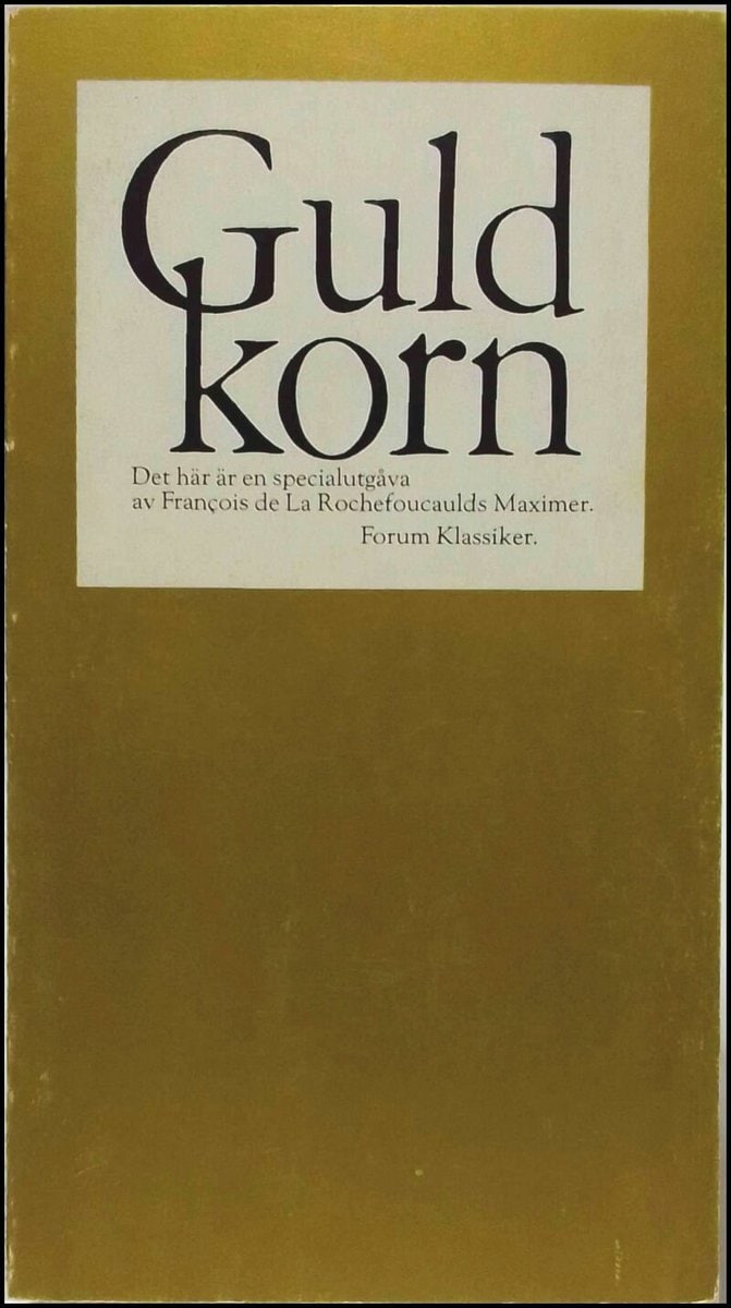 Forum | 1974 | Limhäftad. Normalt antikvariskt skick. 8:o (15-25 cm i höjd) | 97 s | 9137056468 | Skönlitteratur : Romaner & noveller : Skönlitteratur översatt till svenska | Originaltitel: Reflexions ou sentences et Maximes morales | Översättare: Sköld, Hannes | Språk: Svenska