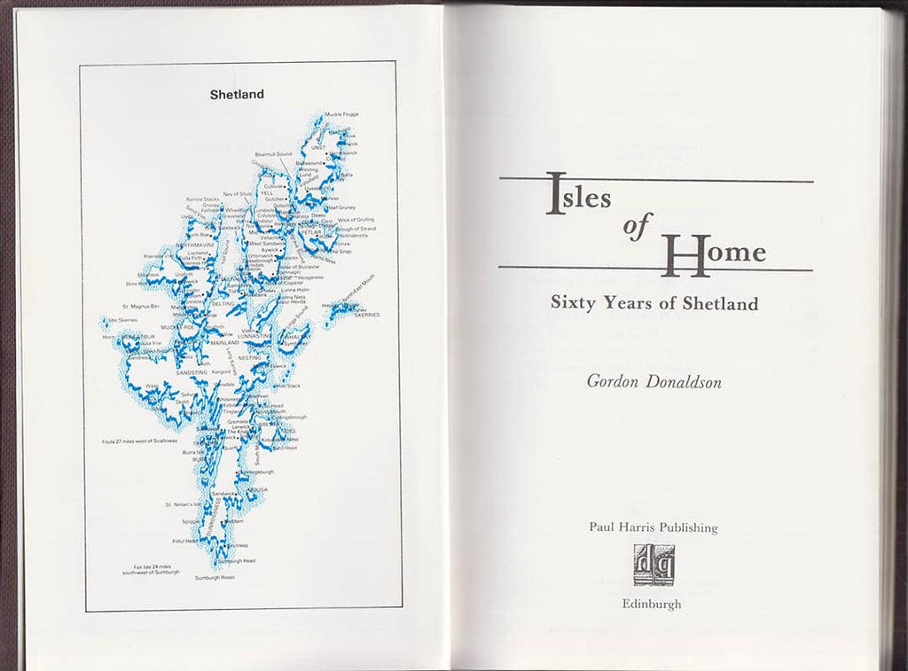 Gordon Donaldsons bok Isles of Home. Sixty Years of Shetland ger en djupgående skildring av livet och kulturen på Shetlandsöarna. Med 188 sidor och 59 svartvita fotografier, samt en färgkarta, erbjuder denna första upplaga en visuell och informativ upplevelse av denna unika del av Skottland. Boken, utgiven av Paul Harris 1983, är bunden i brunt klotband med förgylld ryggtitel och är i bra skick.