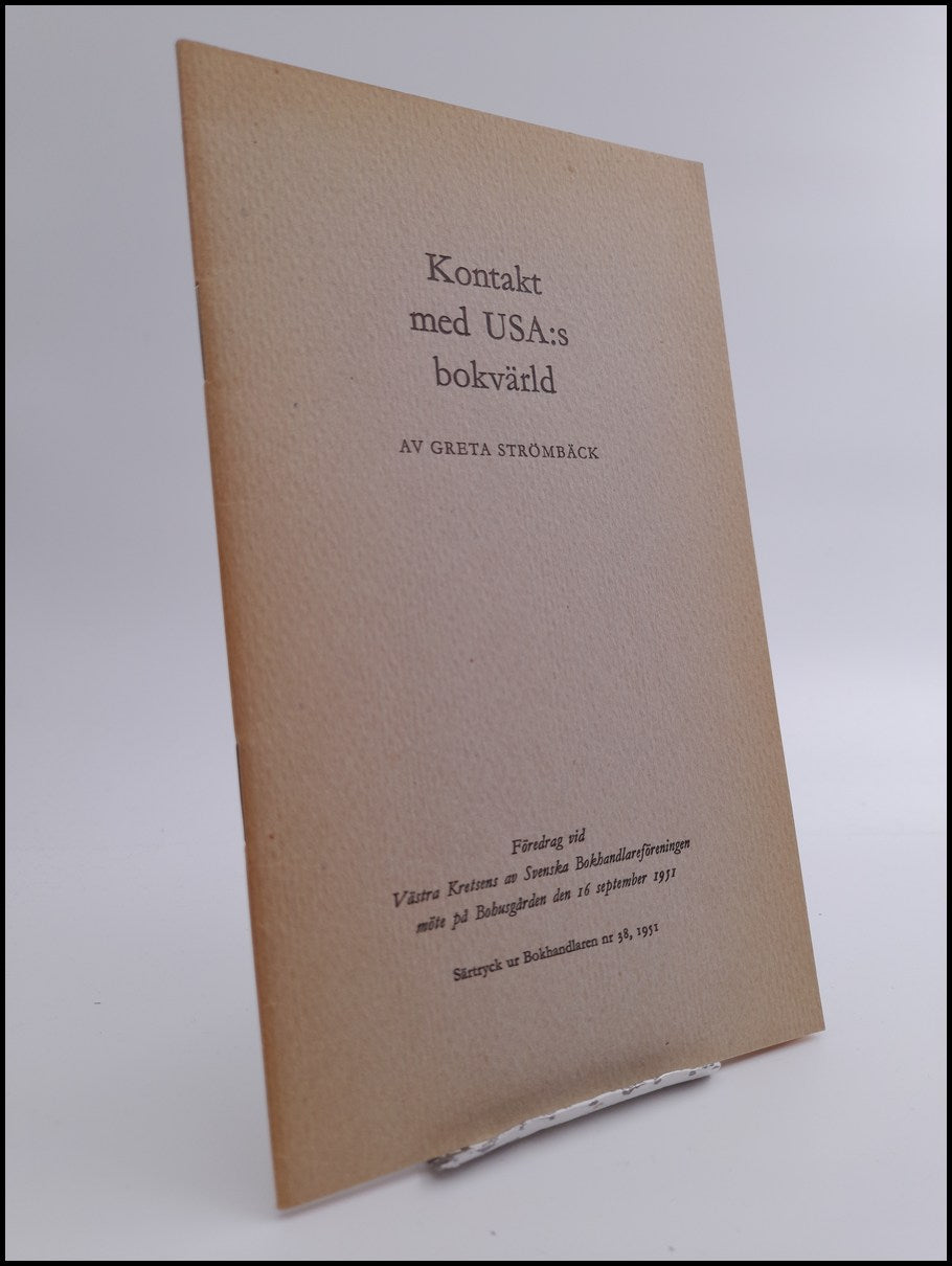 Denna bok, Kontakt med USA:s bokvärld av Greta Strömbäck, erbjuder en intressant insikt i den amerikanska bokmarknaden genom ett föredrag som hölls vid Västra Kretsens av Svenska Bokhandlarföreningen möte på Bohusgården den 16 september 1951. Med ett fokus på humaniora och bok- och biblioteksväsen, ger boken läsaren en förståelse för hur litteraturen och bokbranschen i USA såg ut under denna period.