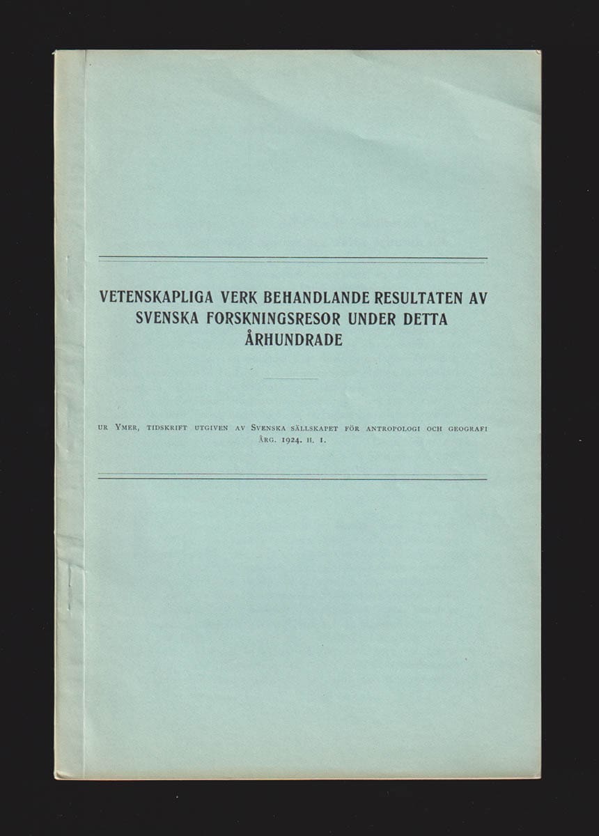Information om Vetenskapliga verk behandlande resultaten av Svenska forskningsresor under detta århundrande av Gunnar Andersson