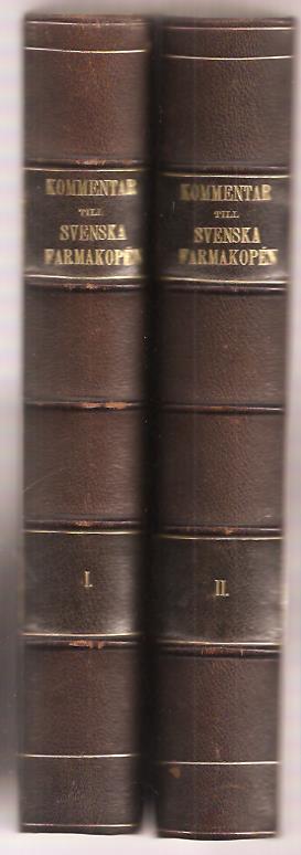 Verket är bundet i halvskinnband med fem upphöjda bind och visar endast lätta tecken på slitage, vilket är förväntat för en bok av denna ålder. I Kommentar till Svenska farmakopén presenteras en grundlig analys av farmakopéer och deras betydelse för medicinsk praxis. Berghs arbete erbjuder en unik inblick i den historiska och geografiska kontext som omger läkemedel i Sverige, med särskild fokus på regioner som Falun och Dalarna.