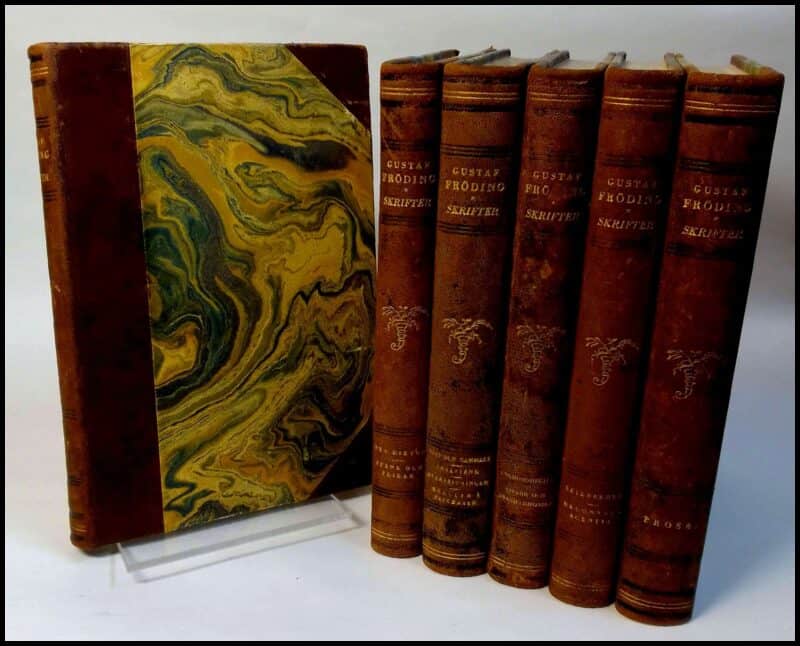 Albert Bonniers Förlag | 1944 / 1945 | Halvfranskt band. Förlagets sex halvfranska band, förgyllda ryggtitlar, övre guldsnitt. 8:o | 6 vol. : cirka 2500 s. | Skönlitteratur : Lyrik & poesi | Språk: Svenska