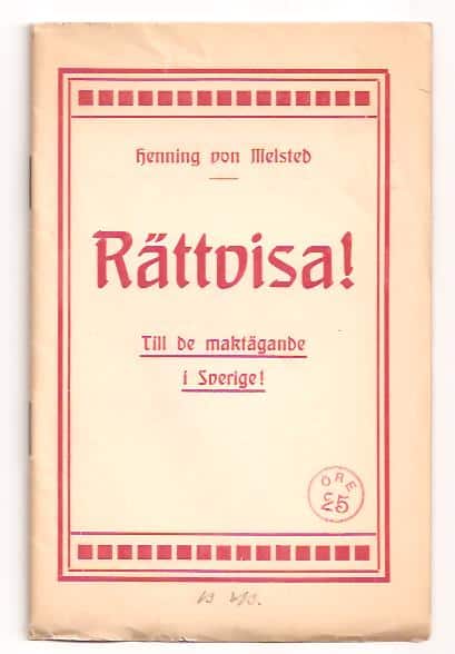 Rättvisa! Till de maktägande i Sverige! av Henning von Melsted är en tankeväckande skrift som utmanar de politiska strukturerna i Sverige. Utgiven 1908 av O. L. Svanbäcks boktryckeri, är denna klammerhäftade bok på 32 sidor en djupgående reflektion över rättvisa och makt. Melsted riktar sig direkt till de som har makt och ställer frågor som fortfarande är aktuella i dagens samhälle.