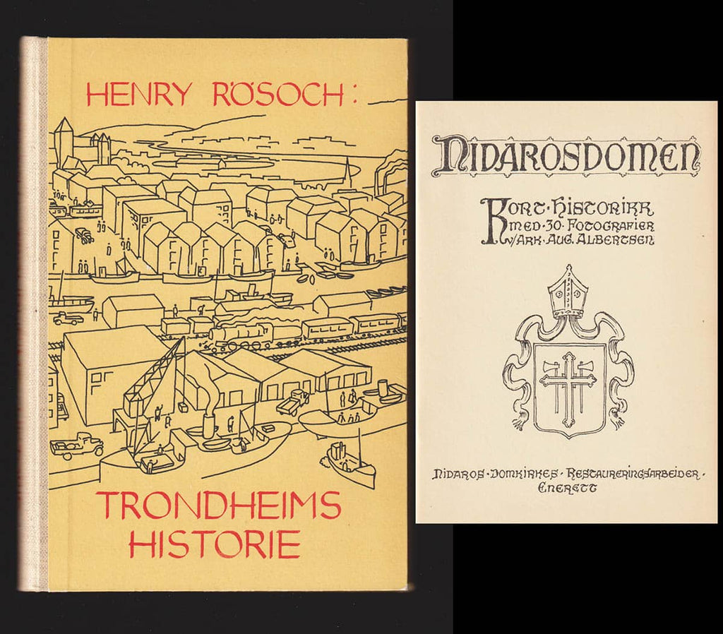 Upptäck Trondheims historie + Nidarosdomen. Kort historikk med 30 Fotografier v/Ark. Aug Albertsen, en bok som erbjuder en djupgående insikt i Trondheim och dess mest ikoniska byggnad, Nidarosdomen. Denna publikation, utgiven av Trondheim kommune och F. Bruns Bokhandels Forlag 1939, ger en unik historisk kontext och visuellt material som fångar stadens och domkyrkans betydelse.