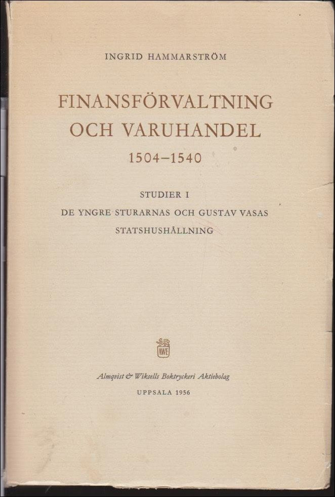 Boken Finansförvaltning och varuhandel 1504-1540 : studier i de yngre Sturarnas och Gustav Vasas statshushållning behandlar den ekonomiska förvaltningen och varuhandeln i Sverige under en viktig period av landets historia. Författaren Ingrid Hammarström analyserar hur statshushållningen utvecklades under de yngre Sturarnas och Gustav Vasas tid, med fokus på de ekonomiska strukturer och system som präglade denna epok.