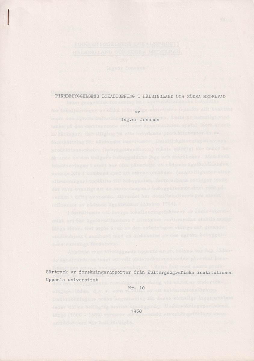 Information om Finnbebyggelsens lokalisering i Hälsingland och södra Medelpad av Ingvar Jonsson