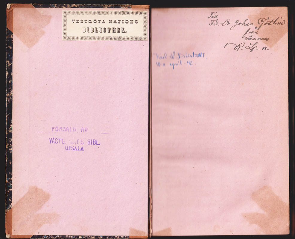Verket omfattar xviii, 399 sidor och är bundet i ett halvfranskt band med förgyllda ryggar och marmorerade snitt. Trots vissa tecken på slitage, såsom en lagad falsspricka och några fläckar på titelbladet och sidorna, behåller boken sin akademiska betydelse. Den bär även spår av tidigare ägande, inklusive en etikett från 'Vestgöta Nations Bibliothek' och stämplar som visar att den har varit en del av ett bibliotek.