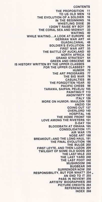 Innehållet i Graphic Art of World War II fungerar som en visuell sammanställning av den mänskliga erfarenheten under kriget. Boken är en värdefull källa för den som är intresserad av militaria och konst relaterad till krigshistoria. Genom att kombinera konst och berättande skapas en djupare förståelse för de utmaningar och upplevelser som soldater ställdes inför.
