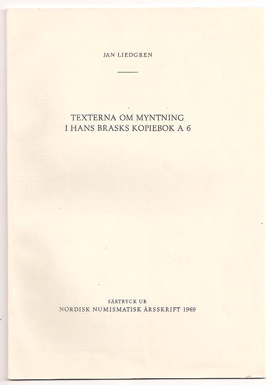 Information om Texterna om myntning i Hans Brasks kopiebok A 6 av Jan Liedgren