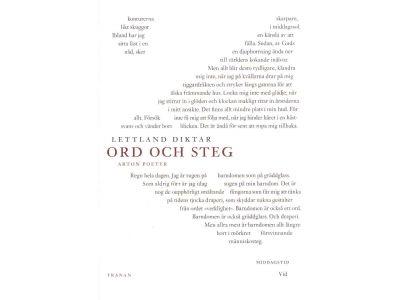 Antologi med arton moderna lettiska poeter. Häftad, mycket fint antikvariskt skick, 243 sidor, Bokförlaget Tranan, Riga, 2008.