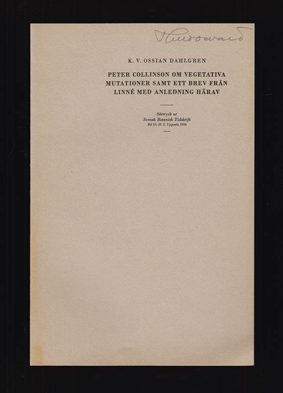 Information om Peter Collinson om vegetativa mutationer samt ett brev från Linné med anledning härav av K. V. Ossian Dahlgren
