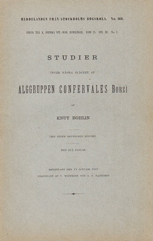 Information om Studier öfver några slägten af alggruppen Confervales Borzì. av Knut Bohlin