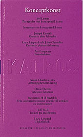 En annan och motsatt läsning, som avtecknar sig på historiskt avstånd, är att det minst lika mycket handlar om en (säkerligen omedveten) anpassning till en ny institutionell utveckling. Hur hitta en form för verk, eller snarare verksamhet, som svarar mot de nya avancerade formerna för reproduktion och distribution? Tidskrifter, media, och inte publik direktkontakt, bildar basen för det nya sättet att kommunicera. På så sätt kan man säga att konceptkonsten iscensätter verkets upplösning i variabler, instruktioner, programmering och simulering, i olika typer av »information« och »immaterialier«,27 där nästa steg kanske tas idag: konstverket på väg bort från Walter Benjamins »mekaniska reproduktionsålder« och in i den digitala reproduktionsåldern, även om konsekvenserna av denna transformation ännu är svåra att överblicka. Konceptkonsten öppnar en tillgång till det mediala rummet på ett sätt som förblev omöjligt för en tidigare, materiellt definierad konst, och dess kritik av varufetischismen utgör i detta avseende ett viktigt moment i steget bortom estetikens motsvarighet till den klassiska politiska ekonomin och dess fokus på objektet som ett nexus av arbete, tid och sociala relationer.