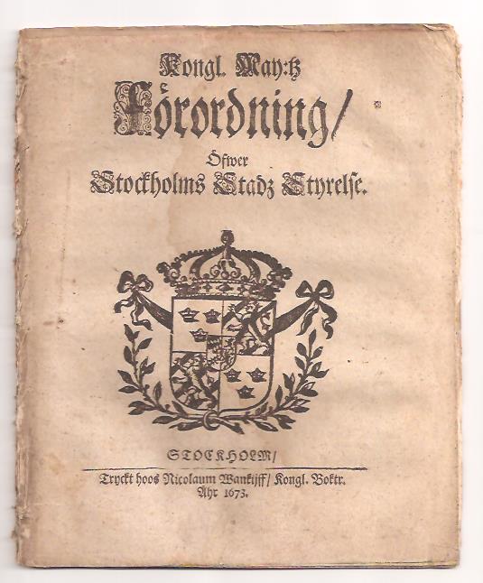 Kongl. May:tz förordning, öfwer Stockholms stadz styrelse är en historisk publikation som markerar en viktig punkt i Stockholms förvaltning. Denna förordning, som beslutades den 12 december 1672, utgör den första tryckta regleringen av stadens styrelse i 22 punkter. Med sina 32 sidor ger den en inblick i hur Stockholm organiserades och styrdes under 1600-talet.