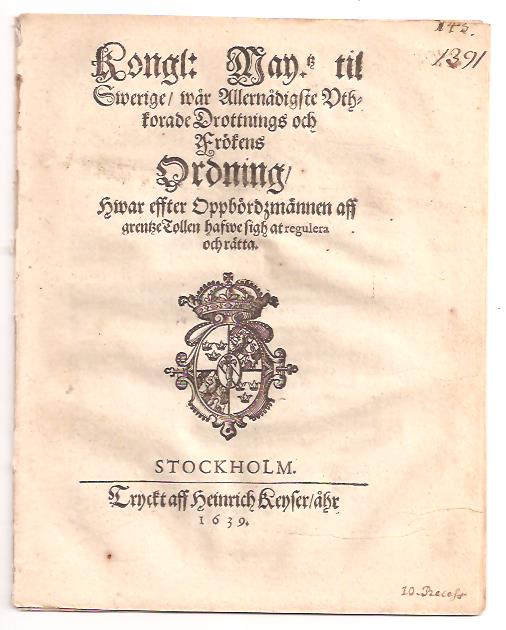 En tidig tullordning från 1639