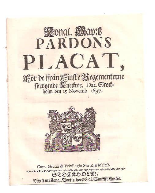 Den historiska skriften Kongl. May:tz Pardons Placat, För de ifrån Finske Regementerne förrymde Kneckter ger en inblick i den svenska arméns hantering av desertörer under 1600-talet. Författad av Kungl. Maj:t och publicerad 1697, handlar dokumentet om benådningen av soldater som rymt från sina regementen. Detta är en betydelsefull del av Sveriges militära historia, som belyser de sociala och politiska aspekterna av krig och desertion.