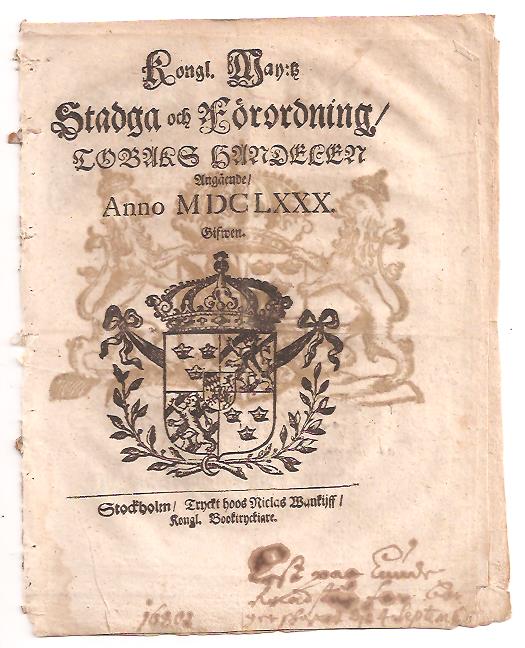 Information om Kongl. May:tz Stadga och Förordning, Tobaks Handelen Angående av Kungl. Maj:t