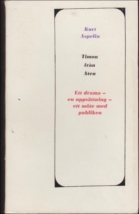 Timon från Aten: Ett drama, en uppsättning, ett möte med publiken av Kurt Aspelin erbjuder en djupgående analys av Shakespeares verk och dess betydelse inom teater och scenkonst. Boken utforskar inte bara dramat i sig, utan även hur uppsättningar av verket kan påverka publikens upplevelse och tolkning. Aspelin bjuder in läsaren att reflektera över relationen mellan publiken och scenen, och hur denna interaktion formar vår förståelse av dramat.