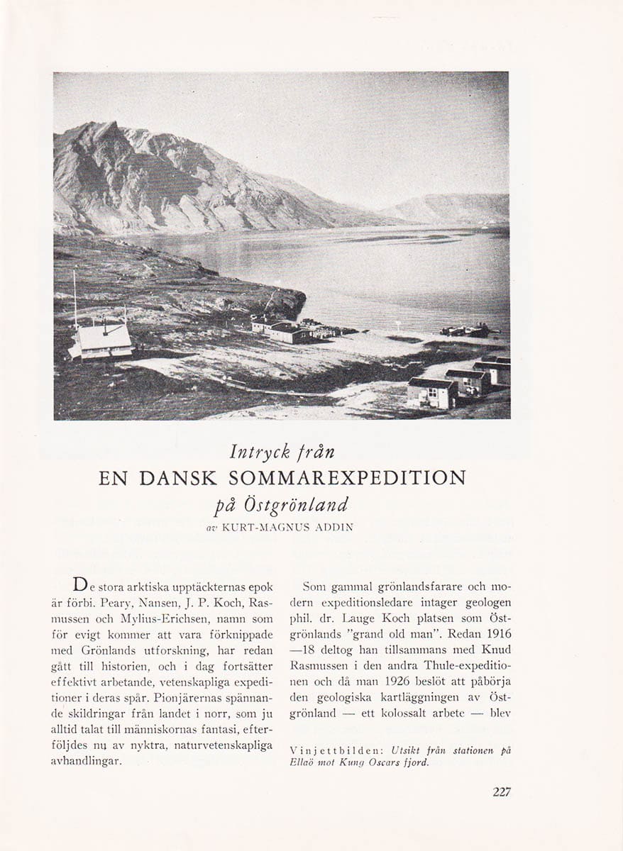 Boken publicerades 1957 som ett extrakt ur tidningen Jorden Runt. Magasin för geografi och resor, som var en viktig plattform för geografi och resor mellan 1929 och 1982. Genom Addins text och fotografier kan läsaren få en djupare förståelse för de utmaningar och upplevelser som präglade de tidiga expeditioner i Arktis och Grönland.