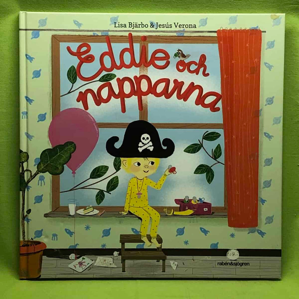 I Eddie och napparna av Lisa Bjärbo får vi följa Eddie, en liten pojke med fem nappar i olika färger. Trots att tanterna på bussen undrar om han inte är för stor för napp, känner Eddie att han är precis lagom. Berättelsen tar oss med på en resa där Eddie bestämmer sig för att sluta med nappar på sin födelsedag.