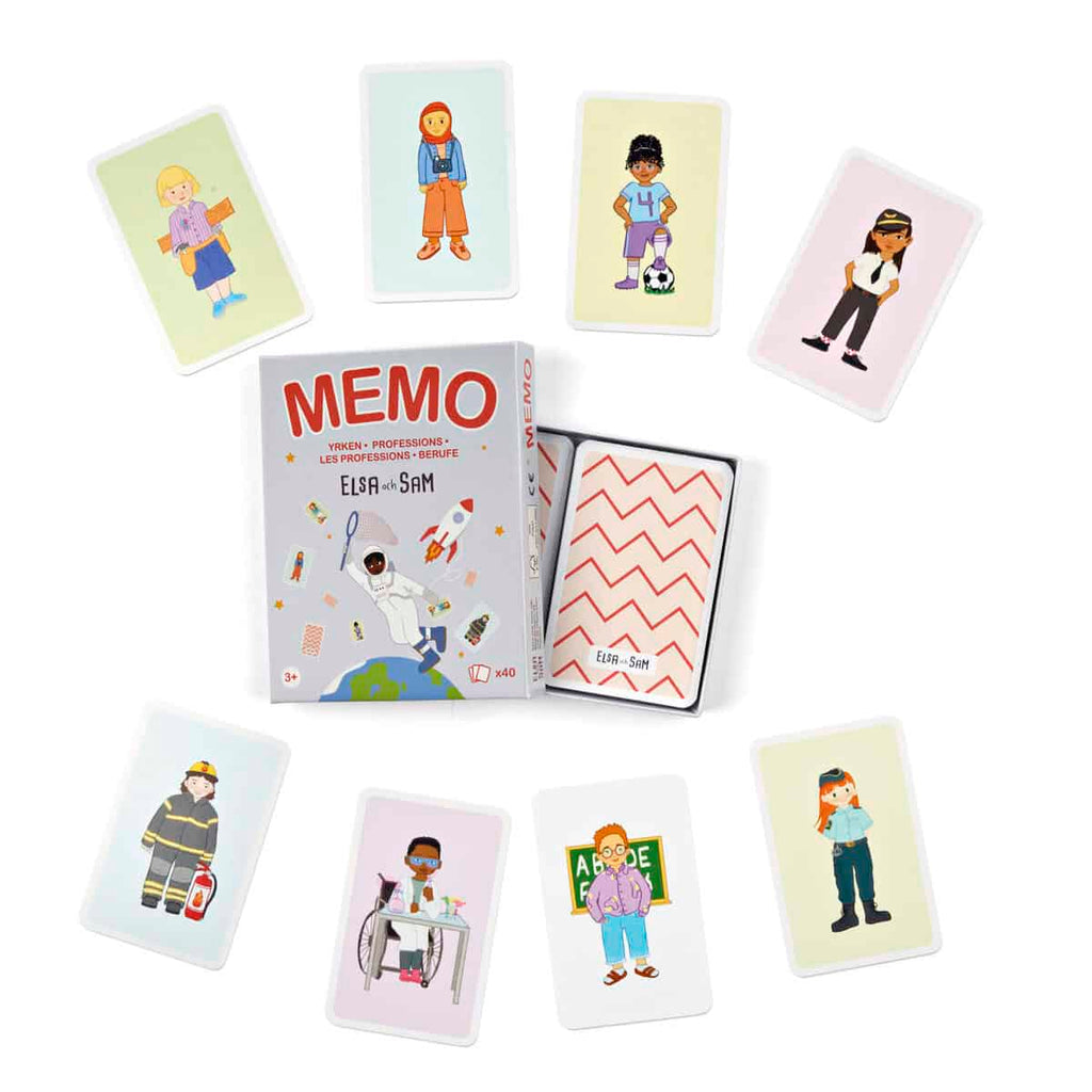 Spelet innehåller 40 kort, vilket ger 20 par med olika yrken representerade. Det är ingen text på korten, vilket gör att spelet kan användas av barn oavsett språk. Detta gör Memo Yrken till en utmärkt aktivitet för flerspråkiga miljöer. Genom att inkludera yrken från olika områden och säkerställa representation i fråga om genus och mångfald, syftar spelet till att skapa en mer inkluderande förståelse av arbetslivet.