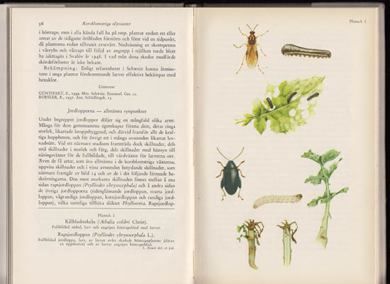Information om Oljeväxternas skadedjur. Färgreproduktioner efter akvareller av Linda Kauri (1910-1979) av Mühlow, Johan ; Sylvén, Edvard (1920-2001)