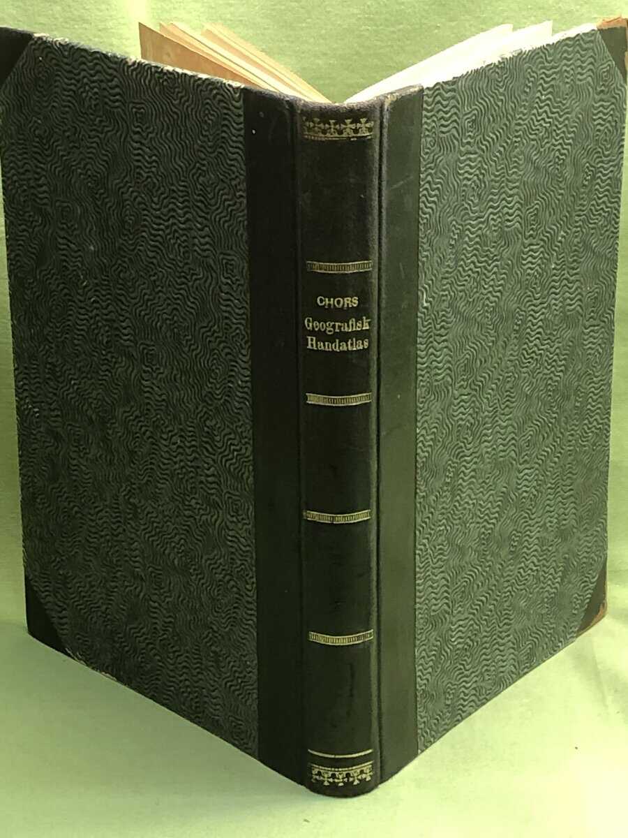 Pärmen av denna atlas är i ett fint skick med guldtryck på ryggen, vilket vittnar om dess tidstypiska elegans. Trots att pärmkanterna visar tecken på slitage, har inlagan bevarats väl och är i ett normalt antikvariskt skick med synliga bruksspår. Den är rikt illustrerad, vilket gör den till en värdefull källa för den som är intresserad av kartografi och geografi.